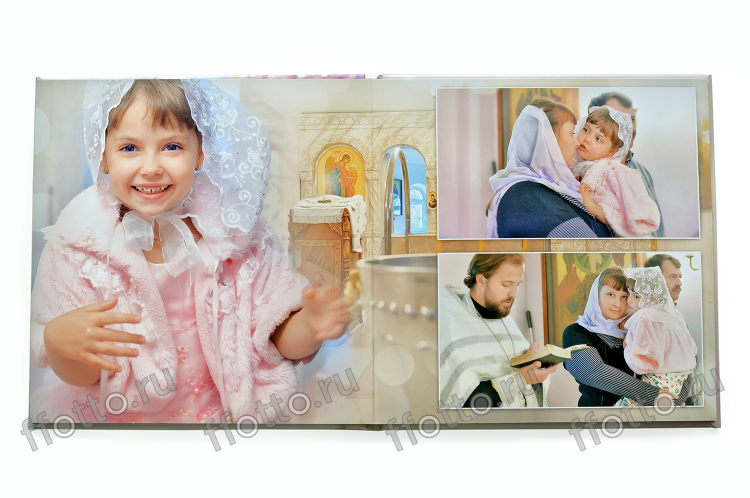 По результатам фотосъемки крещения и венчания, свадебной фотосессии, фотографирования в школе, в детском саду, на детском празднике, семейной прогулке предлагаем изготовить фотокнигу.